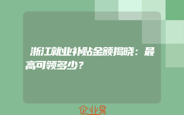 - 浙江就业补贴金额揭晓:最高可领多少?
