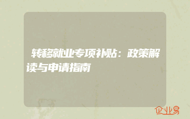 - 转移就业专项补贴:政策解读与申请指南一、政策背景及目标在当前社会经济形势下,国家为鼓励劳动力转移就业,减轻企业与个人的经济压力,实施了转移就业专项补贴政策。该政策旨在促进劳动力合理流动,优化人力资源配置,同时鼓励企业扩大生产规模,提高就业率