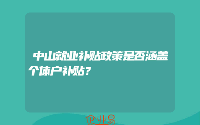 - 中山就业补贴政策是否涵盖个体户补贴?