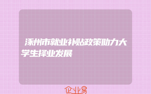 - 涿州市就业补贴政策助力大学生择业发展一、政策背景与意义在当前经济形势下,大学生就业问题一直是社会关注的焦点。涿州市政府为了促进大学生就业,推出了一系列的就业补贴政策,旨在助力大学生择业发展。这些政策的出台,不仅有助于缓解当前大学生的就业压力