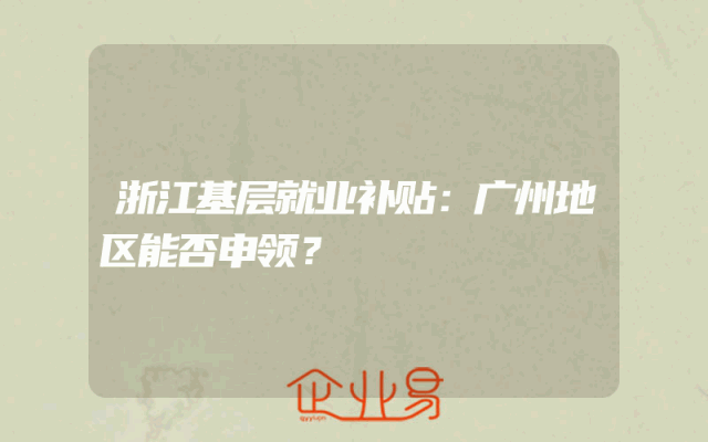 - 浙江基层就业补贴:广州地区能否申领?一、浙江基层就业补贴政策概述浙江省为了鼓励高校毕业生到基层就业,推出了一系列的就业补贴政策。这些政策主要针对在浙江基层单位就业的高校毕业生,以鼓励更多人投身于基层建设。补贴的形式多样,包括生活补贴、岗位补