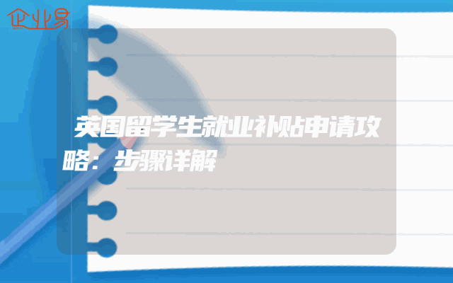 - 英国留学生就业补贴申请攻略:步骤详解一、了解就业补贴政策在开始申请英国留学生就业补贴之前,首先需要了解相关的政策。英国政府为留学生提供了一定的就业补贴,以鼓励国际学生在英国就业。这些政策可能涉及特定的申请条件、补贴金额和申请时限等,因此确保