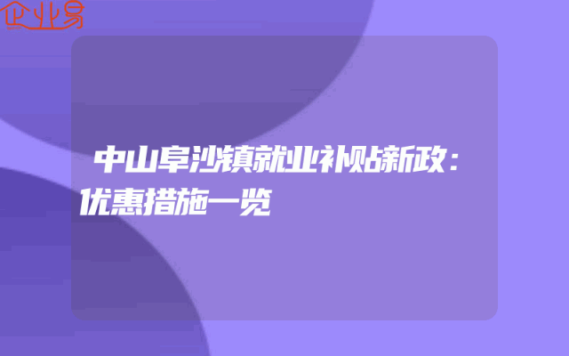- 中山阜沙镇就业补贴新政:优惠措施一览