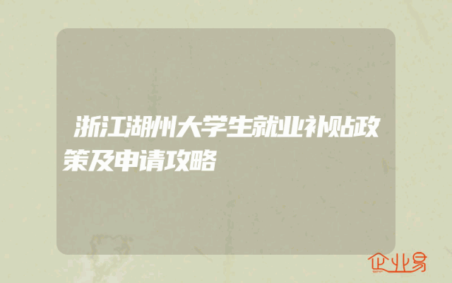 - 浙江湖州大学生就业补贴政策及申请攻略