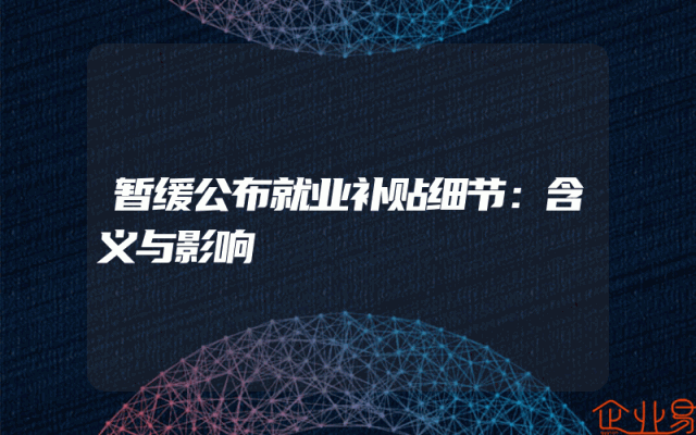 - 暂缓公布就业补贴细节:含义与影响