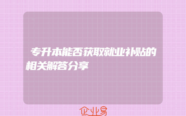 - 专升本能否获取就业补贴的相关解答分享