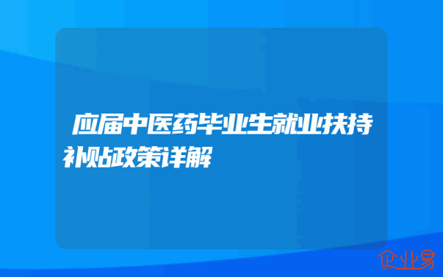 - 应届中医药毕业生就业扶持补贴政策详解