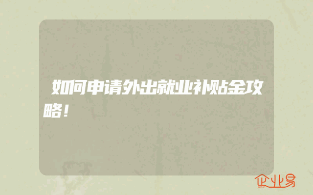 - 如何申请外出就业补贴金攻略!一、了解政策首先,想要申请外出就业补贴金,必须清楚了解相关政策。不同地区和不同企业可能有不同的补贴政策,补贴的对象、条件、金额以及申请流程都可能有所不同。因此,需要详细查阅当地政府或企业发布的政策文件。二、确认资