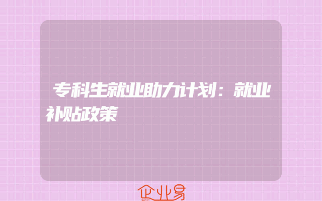 - 专科生就业助力计划:就业补贴政策