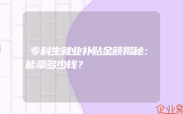 - 专科生就业补贴金额揭秘:能拿多少钱?