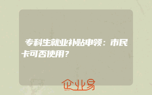 - 专科生就业补贴申领:市民卡可否使用?