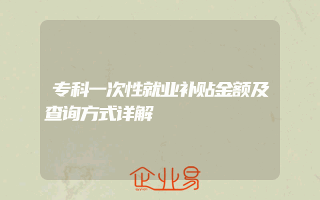 - 专科一次性就业补贴金额及查询方式详解