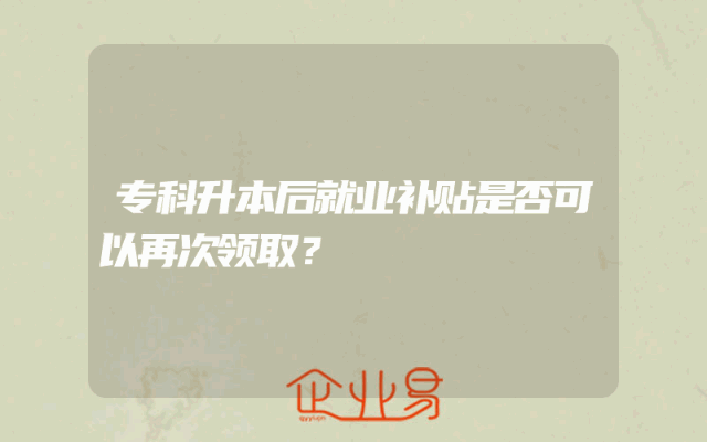 - 专科升本后就业补贴是否可以再次领取?