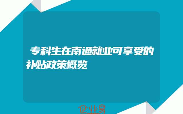 - 专科生在南通就业可享受的补贴政策概览