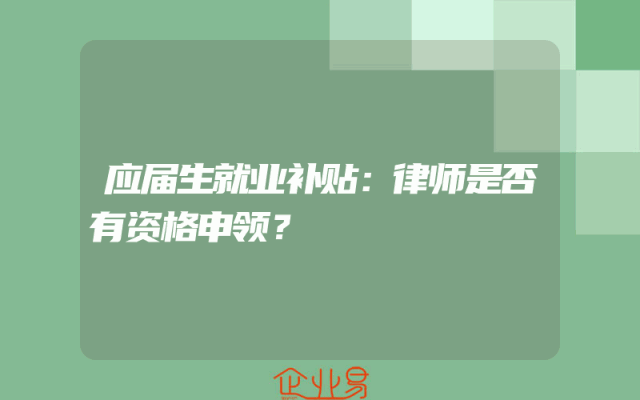 - 应届生就业补贴:律师是否有资格申领?