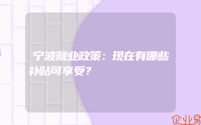 - 宁波就业政策:现在有哪些补贴可享受?