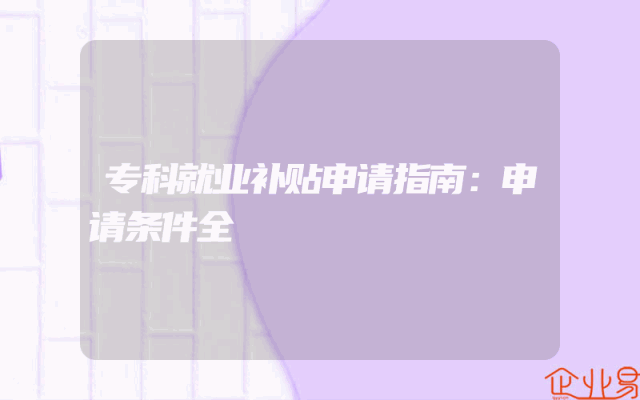 - 专科就业补贴申请指南:申请条件全