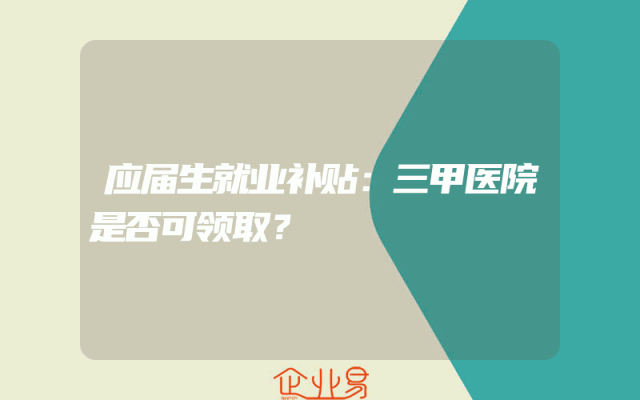 - 应届生就业补贴:三甲医院是否可领取?
