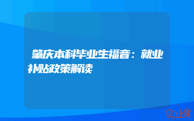 - 肇庆本科毕业生福音:就业补贴政策解读