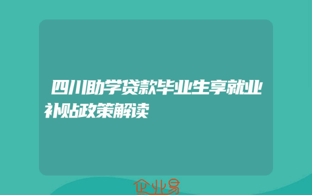 - 四川助学贷款毕业生享就业补贴政策解读