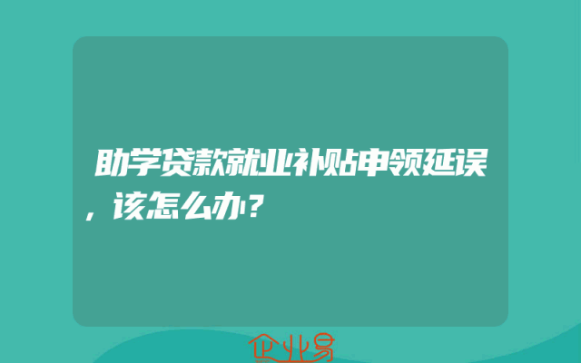- 助学贷款就业补贴申领延误,该怎么办?
