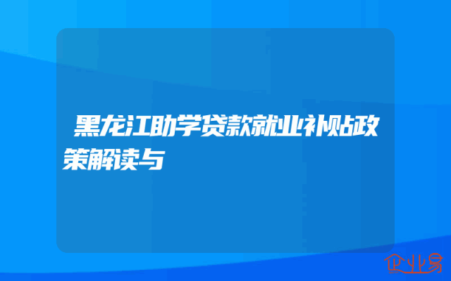 - 黑龙江助学贷款就业补贴政策解读与