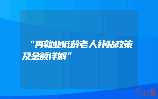 - “再就业低龄老人补贴政策及金额详解”