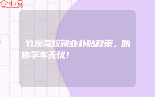 - 竹溪驾校就业补贴政策,助你学车无忧!
