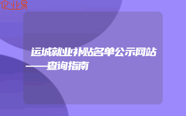- 运城就业补贴名单公示网站——查询指南