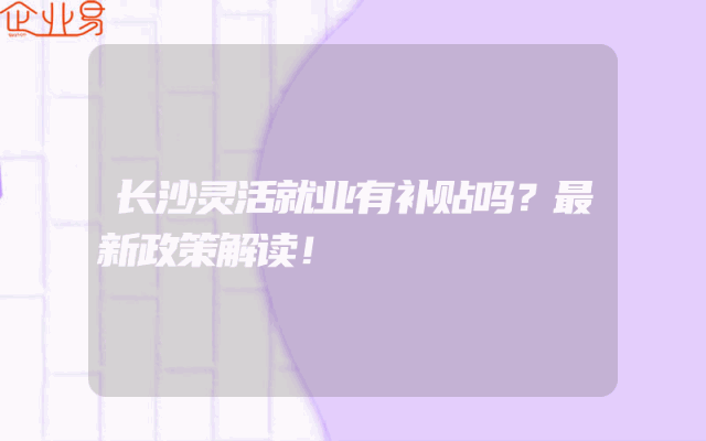 - 长沙灵活就业有补贴吗?最新政策解读!