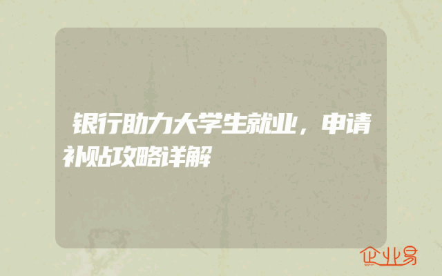 - 银行助力大学生就业,申请补贴攻略详解一、银行与大学生就业的紧密联系在当今社会,银行业作为经济发展的重要支柱之一,对于大学生就业起着举足轻重的作用。银行不仅提供金融服务,还通过一系列政策与措施,助力大学生就业。特别是在疫情影响下,银行业对于稳
