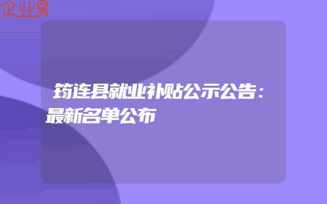 - 筠连县就业补贴公示公告:最新名单公布一、公告概述为了支持本地经济发展,促进就业创业,筠连县政府积极推行就业补贴政策。最近,经过严格的审核和评估,筠连县最新一批就业补贴名单已经确定并予以公示。二、补贴名单公布本次公示的名单涵盖了多个行业和领域
