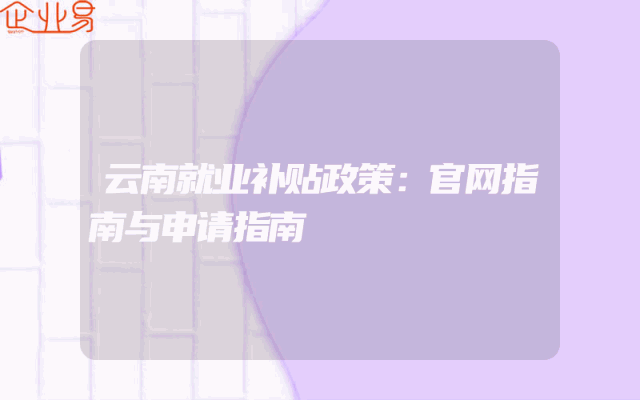 - 云南就业补贴政策:官网指南与申请指南一、云南就业补贴政策概述云南省政府为了鼓励和支持广大民众就业创业,制定了一系列的就业补贴政策。这些政策旨在减轻就业压力,提高人民生活水平,促进社会和谐稳定发展。本篇文章将为您详细介绍云南就业补贴政策的官网