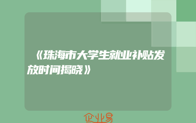 - 《珠海市大学生就业补贴发放时间揭晓》