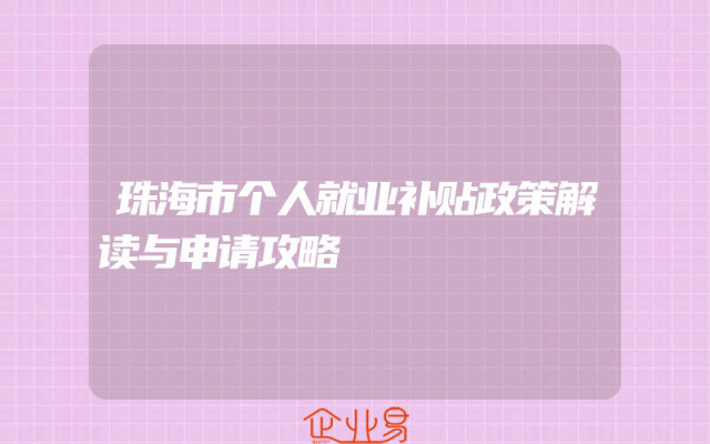 - 珠海市个人就业补贴政策解读与申请攻略