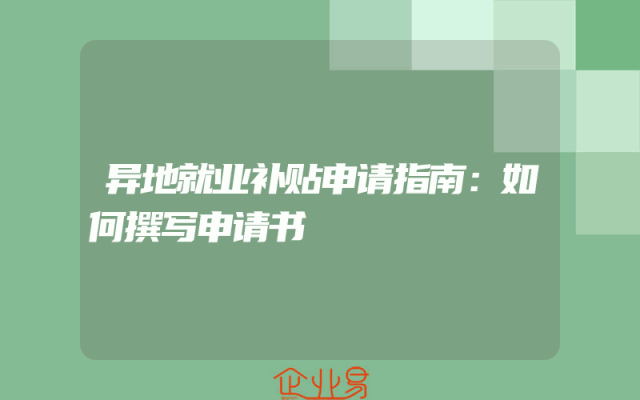 - 异地就业补贴申请指南:如何撰写申请书