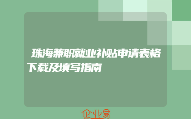 - 珠海兼职就业补贴申请表格下载及填写指南