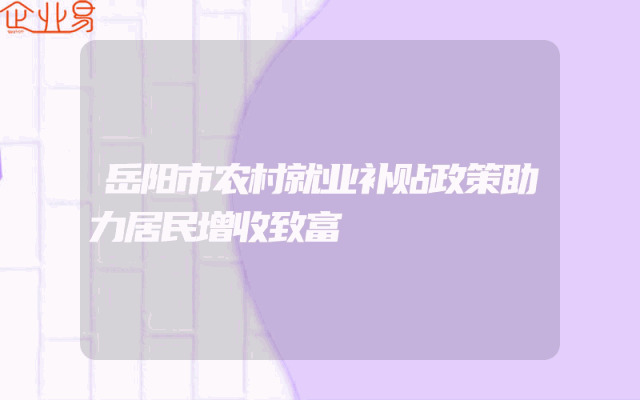 - 岳阳市农村就业补贴政策助力居民增收致富