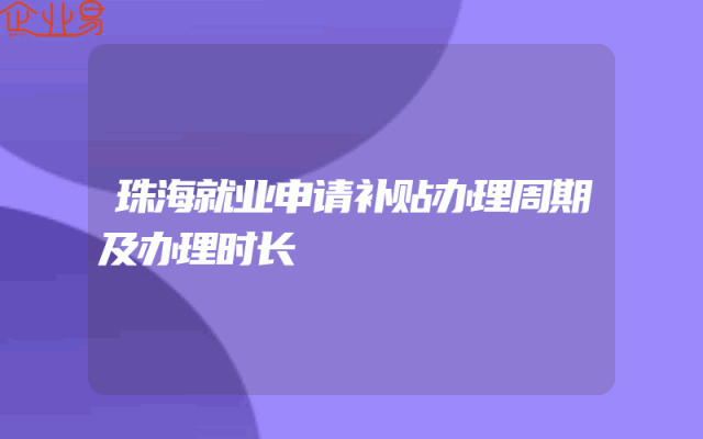 - 珠海就业申请补贴办理周期及办理时长