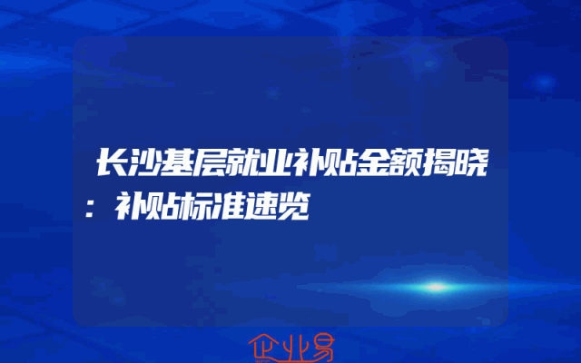 - 长沙基层就业补贴金额揭晓:补贴标准速览