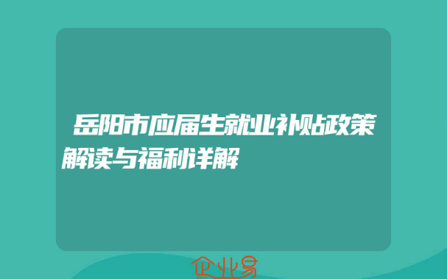 - 岳阳市应届生就业补贴政策解读与福利详解