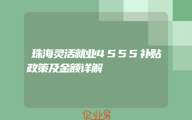 - 珠海灵活就业4555补贴政策及金额详解