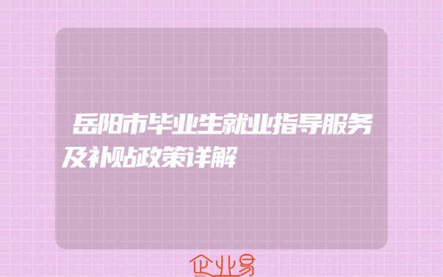 - 岳阳市毕业生就业指导服务及补贴政策详解