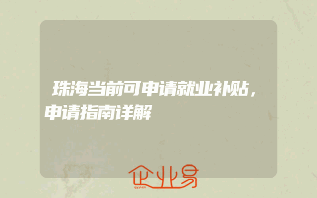 - 珠海当前可申请就业补贴,申请指南详解