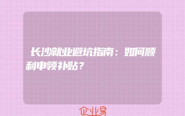 - 长沙就业避坑指南:如何顺利申领补贴?