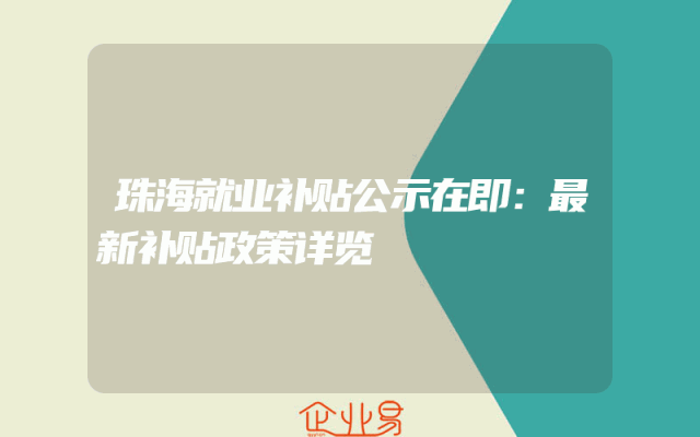 - 珠海就业补贴公示在即:最新补贴政策详览
