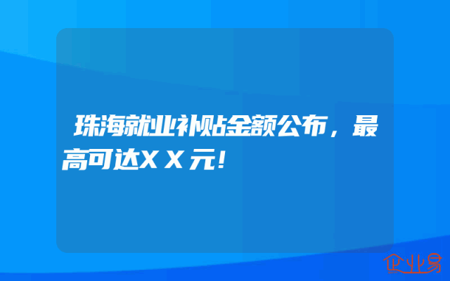 - 珠海就业补贴金额公布,最高可达XX元!