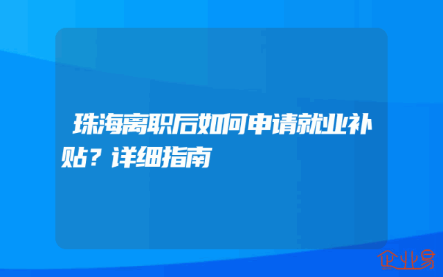 - 珠海离职后如何申请就业补贴?详细指南