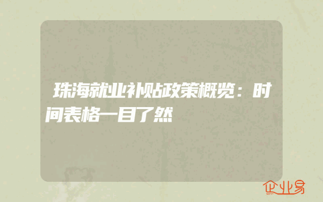 - 珠海就业补贴政策概览:时间表格一目了然