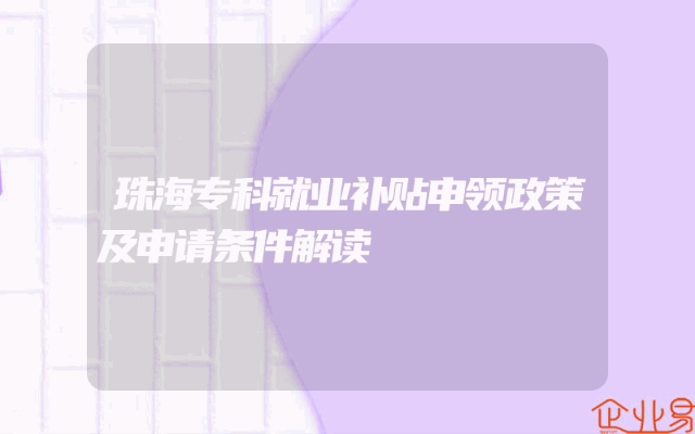 - 珠海专科就业补贴申领政策及申请条件解读